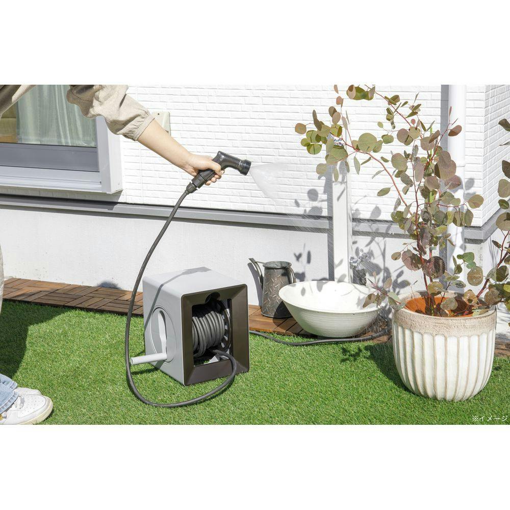 巻きながら洗える機能付き、手巻き式フルーカバーホースリール15m