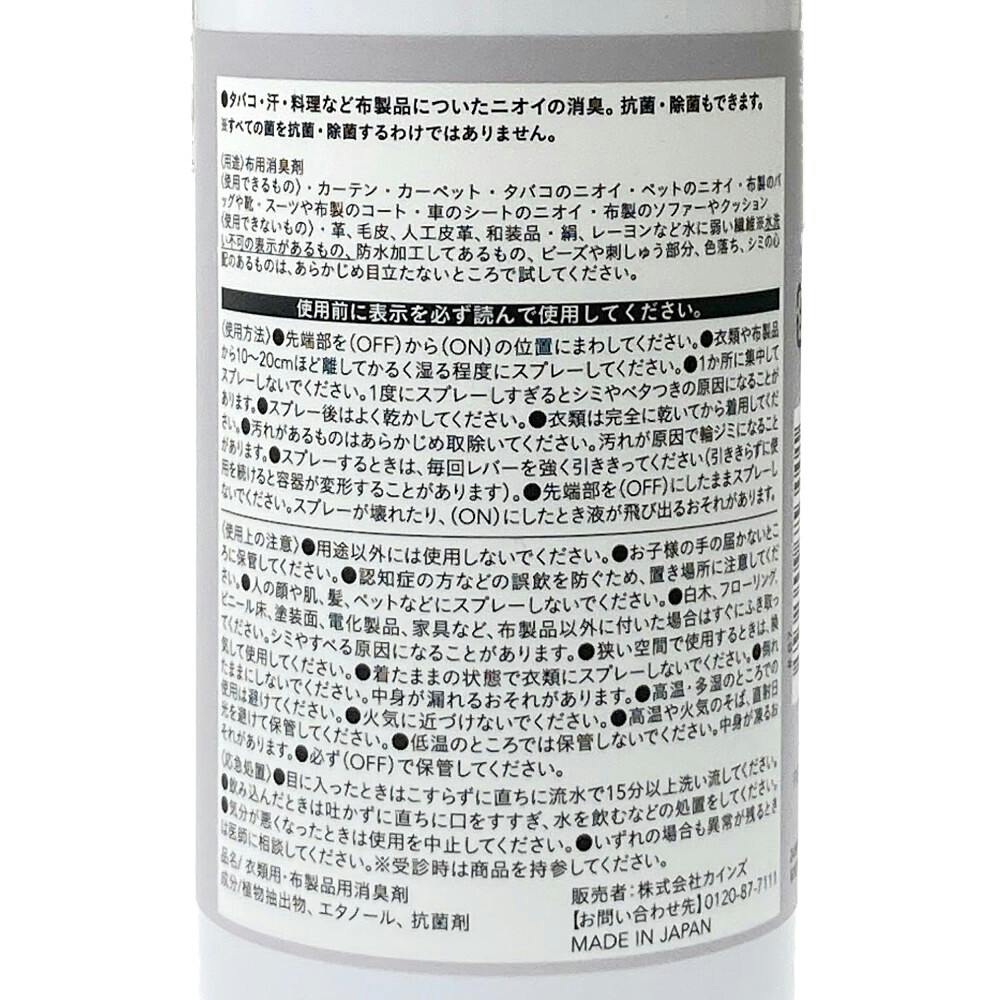 ●24時間抗菌、除菌 ●布用消臭スプレー ●アルコール配合