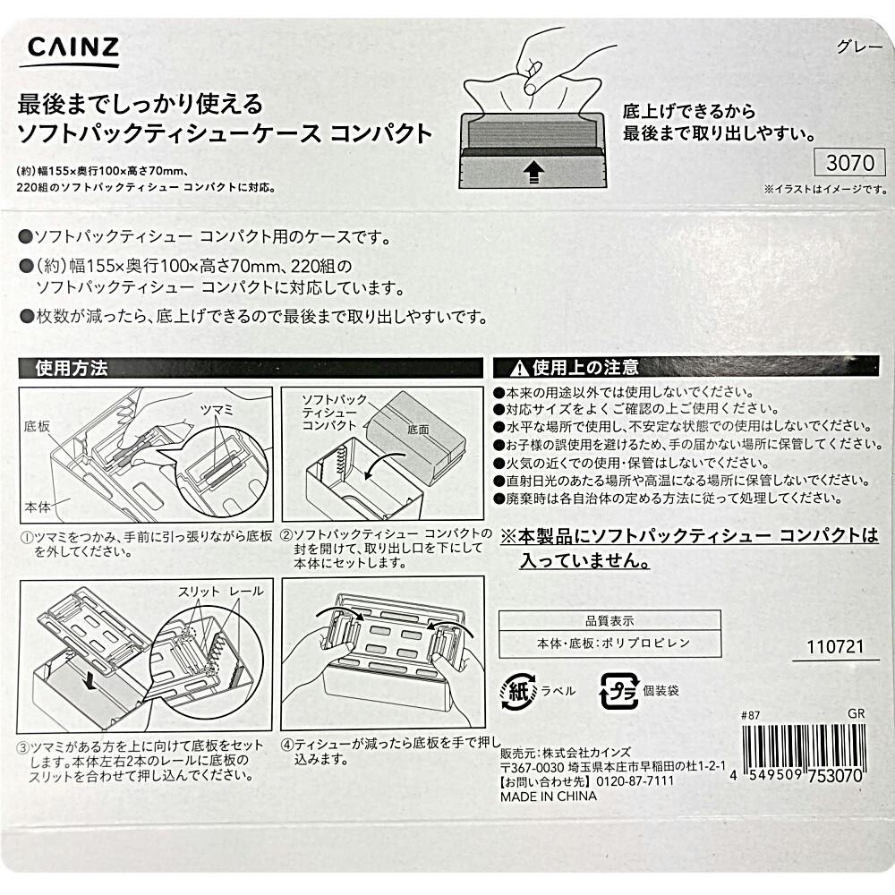 カインズ 最後までしっかり使えるソフトパックティシューケース コンパクト グレー