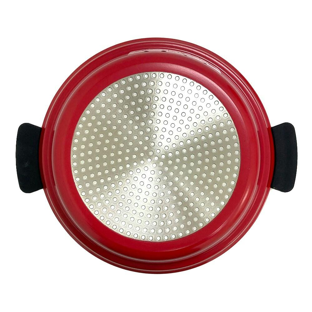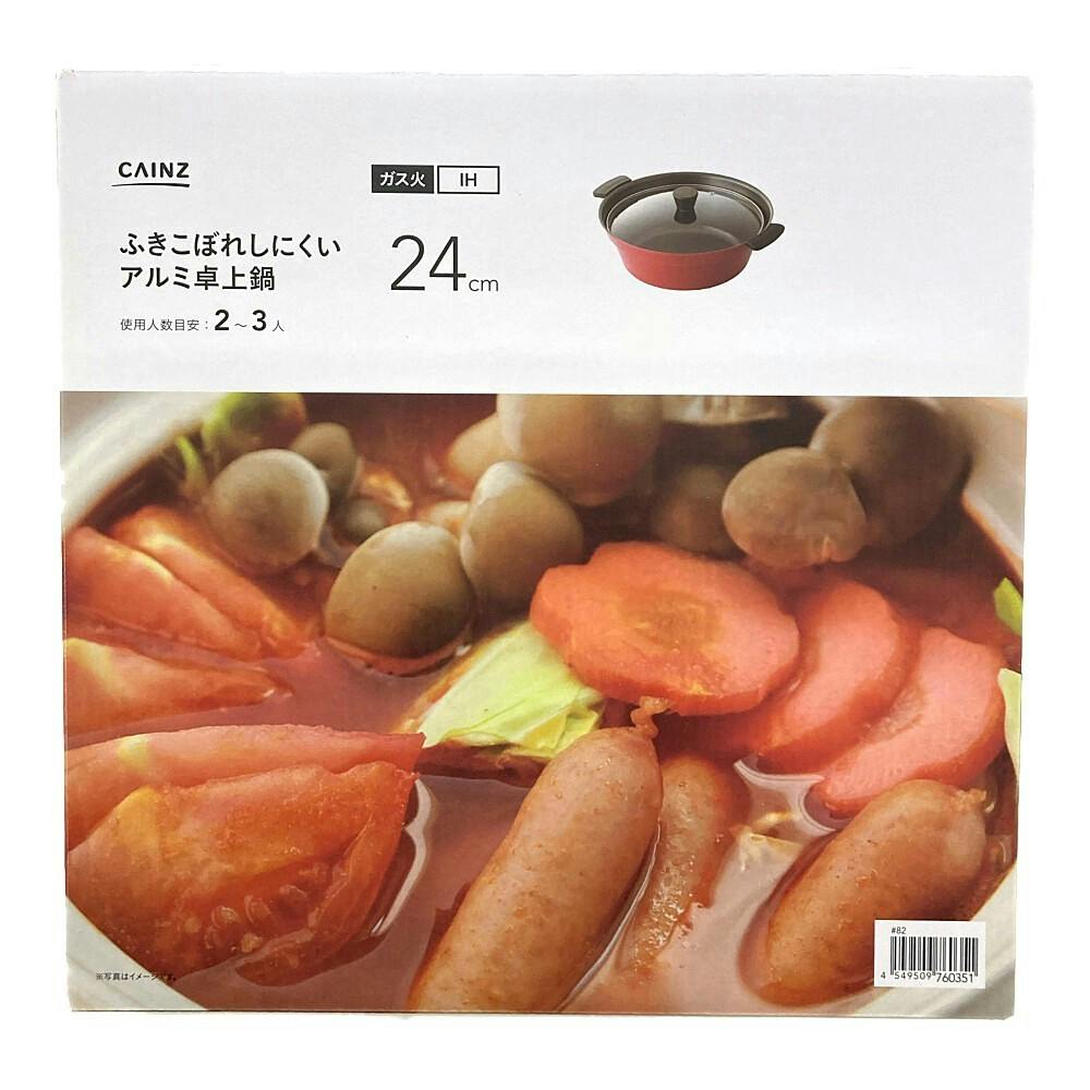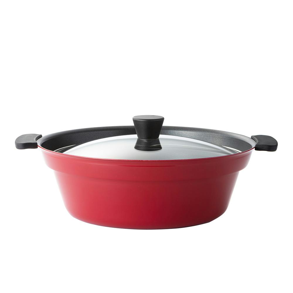 ふきこぼれしにくいアルミ卓上鍋 24cm レッド