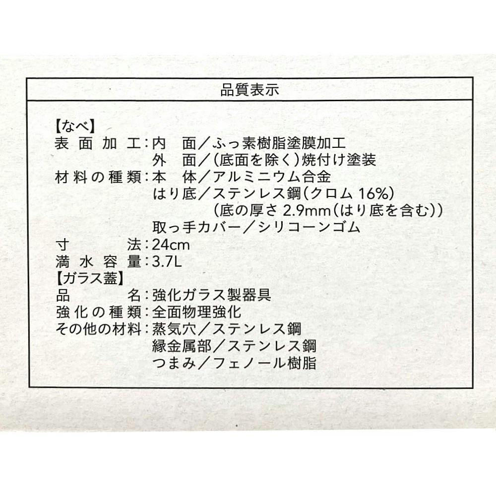 ●本体/アルミニウム合金●はり底/ステンレス鋼(クロム:16%)●取っ手カバー/シリコーンゴム