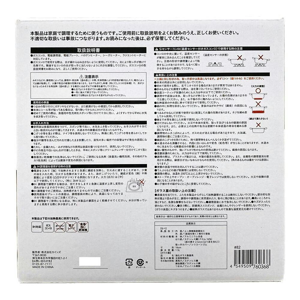 ●本体/アルミニウム合金●はり底/ステンレス鋼(クロム:16%)●取っ手カバー/シリコーンゴム