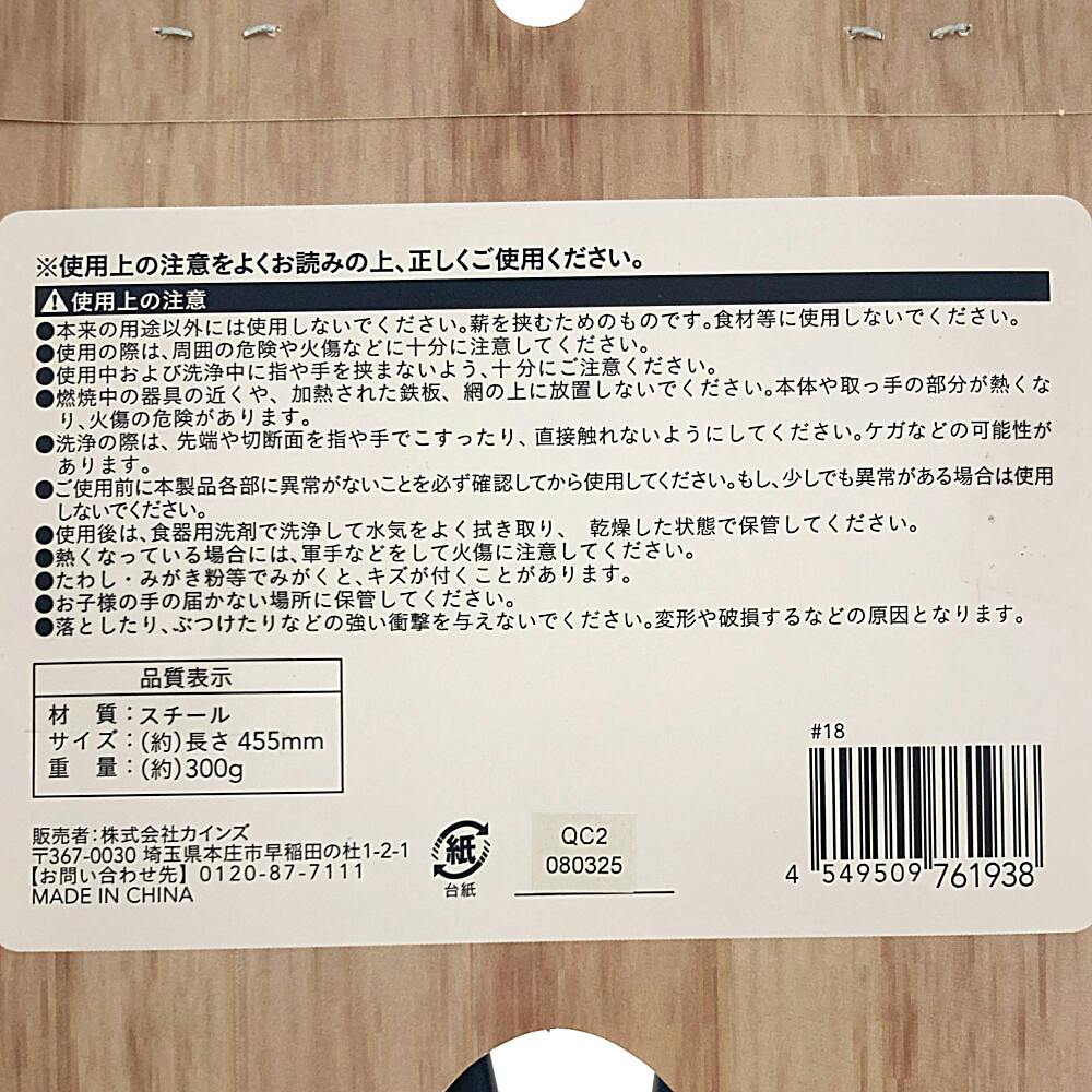 ●本来の用途以外には使用しないでください。薪を挟むためのものです。食材等に使用しないでください。●使用の際は、周囲の危険や火傷などに十分に注意してください。