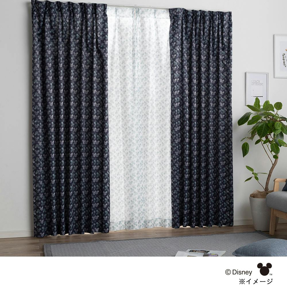 ディズニー 4枚組セットカーテン ミッキーマウス/ドット ネイビー 150×210cm 洗濯OK 形状記憶 遮光99.56% タッセル付 遮像レース(販売終了)