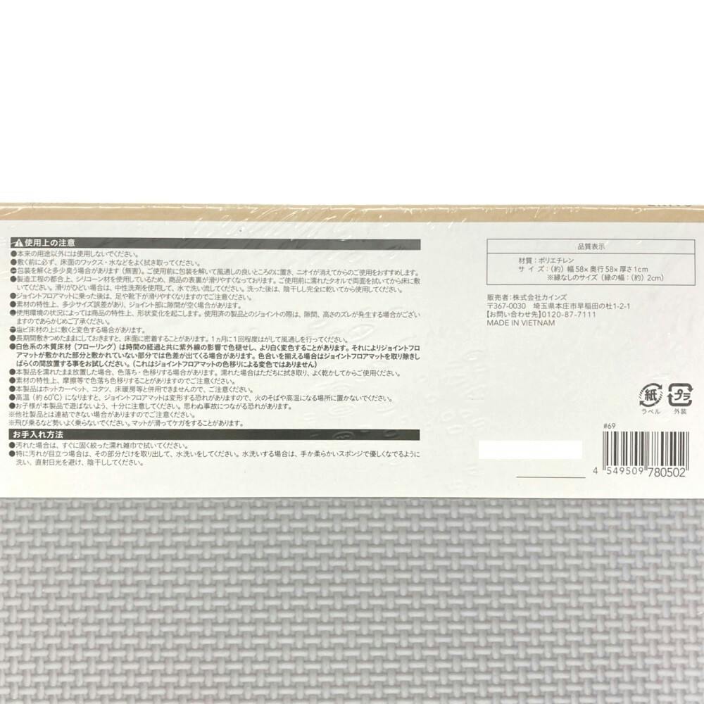 縁付 大判ジョイントフロアマット ホワイト/グレー 58×58cm 4枚組セット