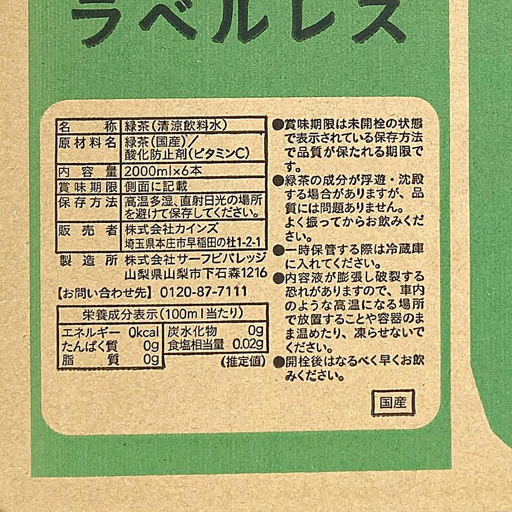【ケース販売】お茶(茶師10段監修) ラベルレス 2L×6本