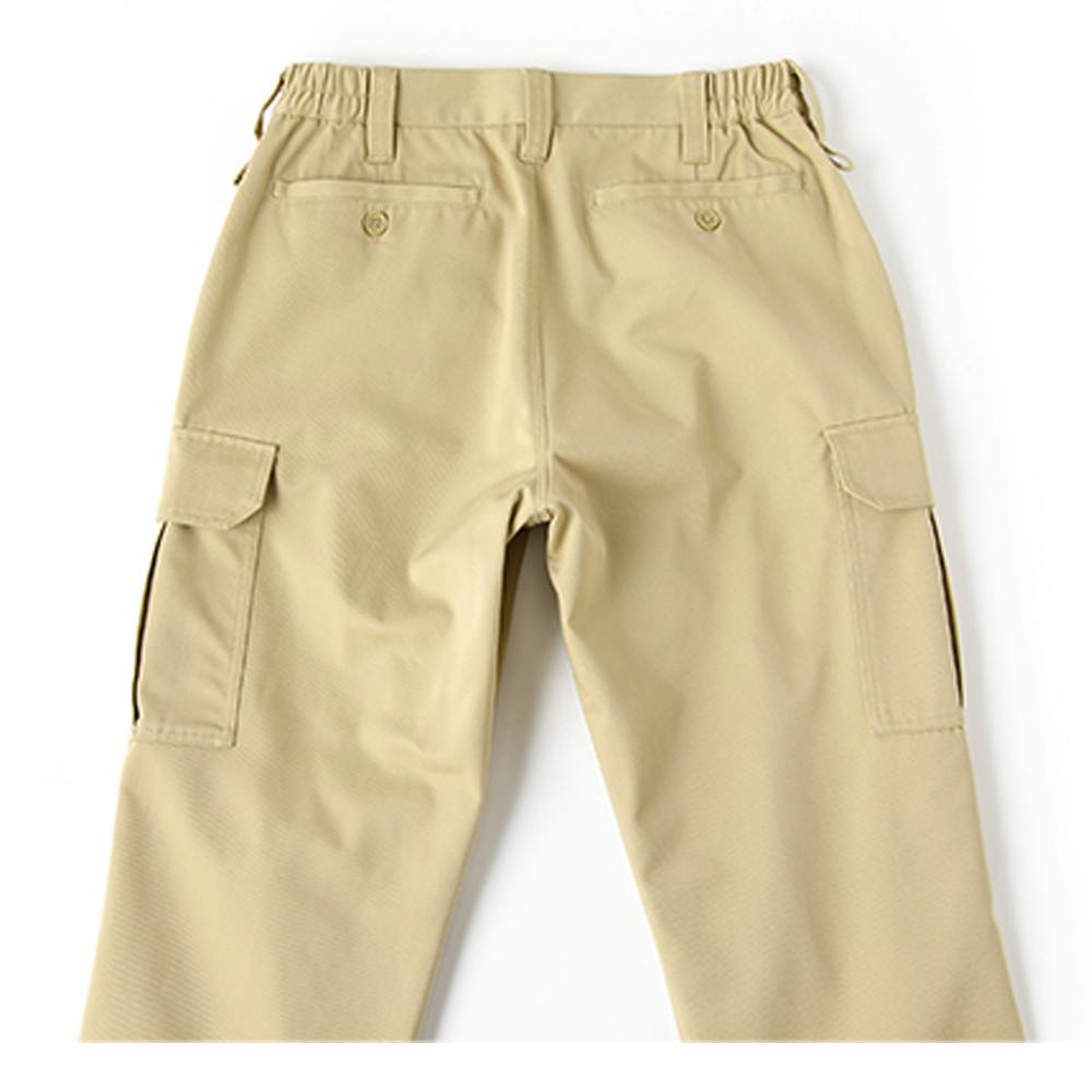 脇ゴムで動きやすい 両脇カラビナループ付き 動きやすい膝ダーツ付き 面ファスナーポケット仕様