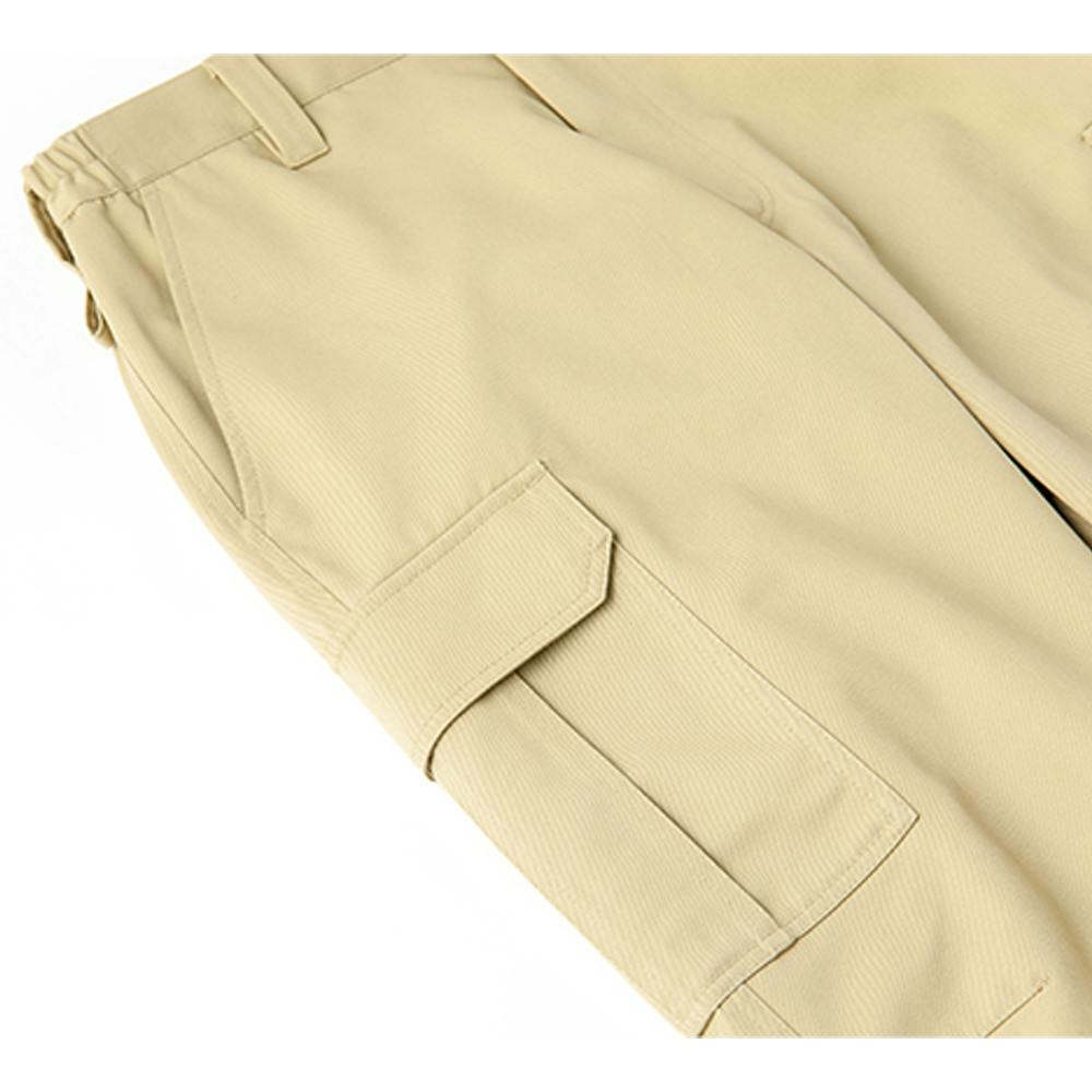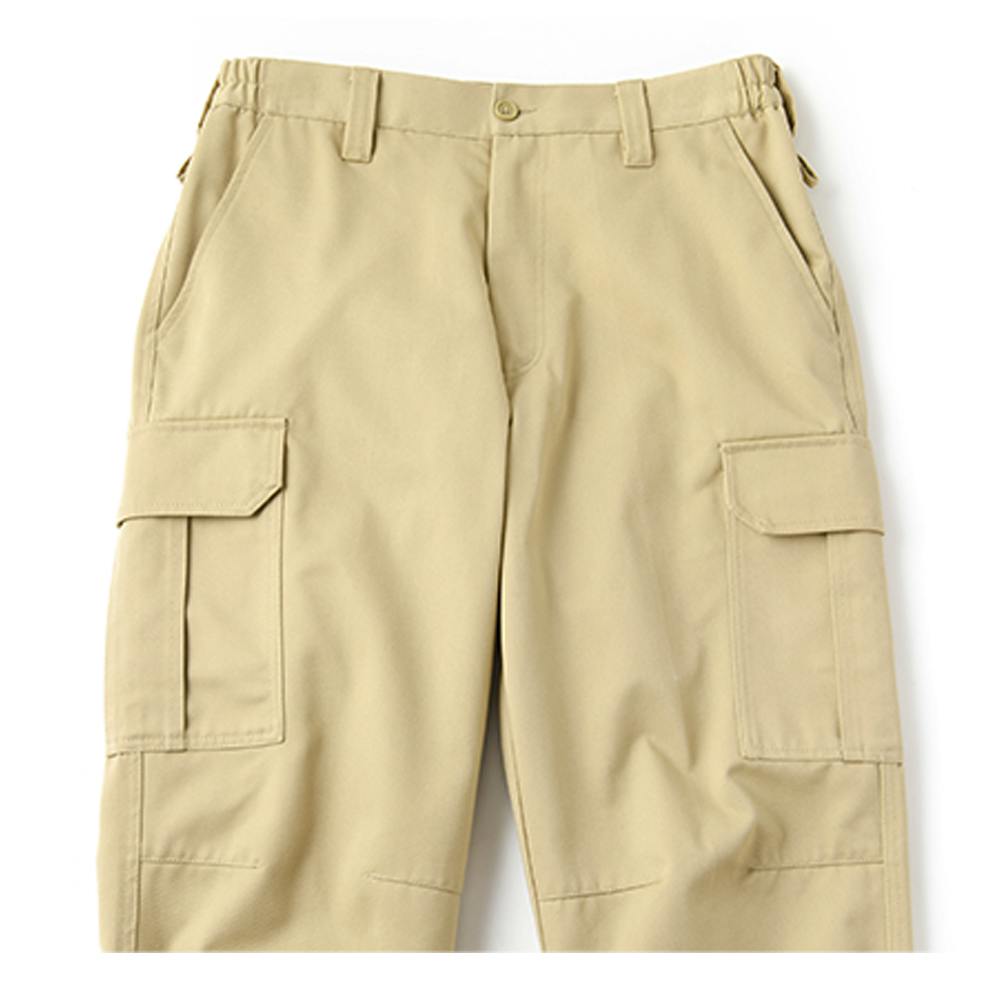 脇ゴムで動きやすい 両脇カラビナループ付き 動きやすい膝ダーツ付き 面ファスナーポケット仕様