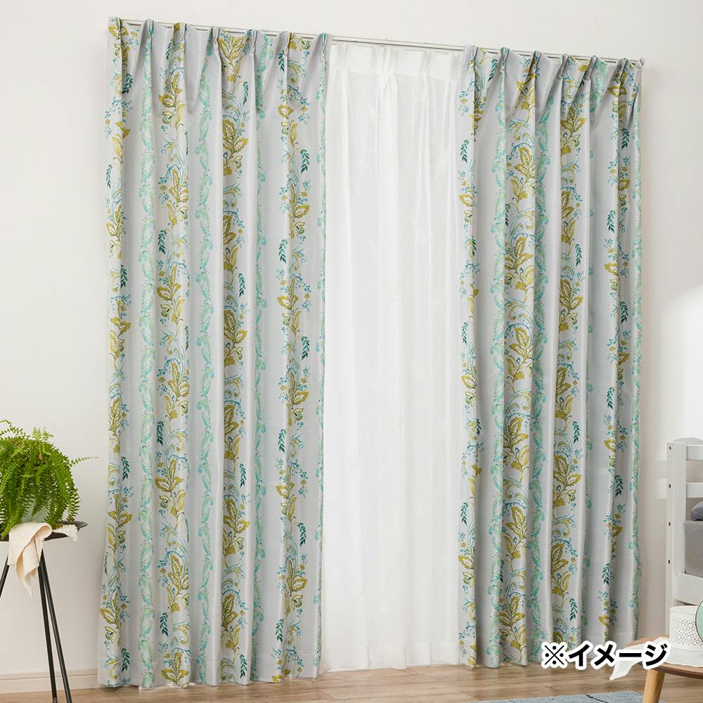 遮光カーテン ペイズリーミントグリーン 100×110cm 2枚組