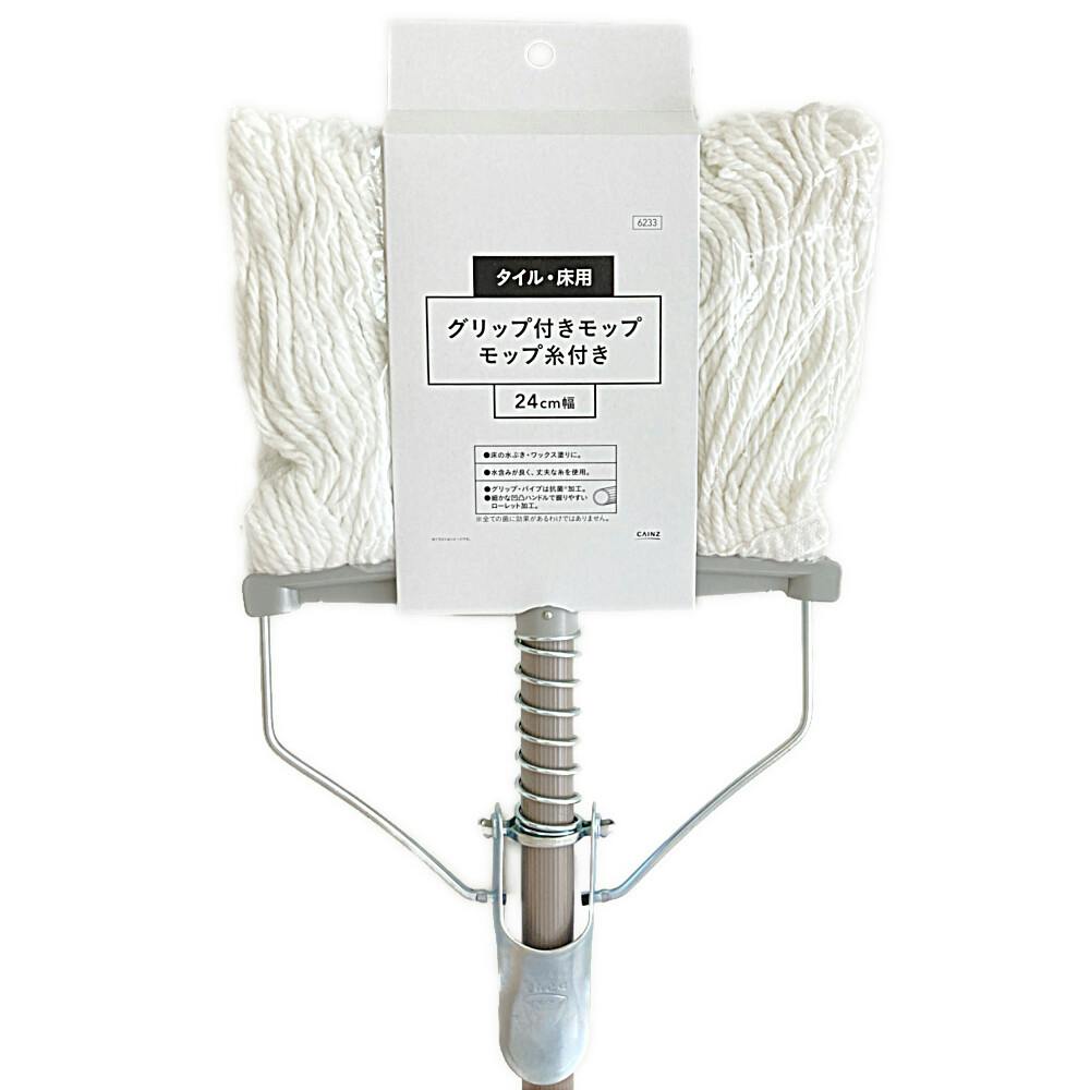 ローレット(凸凹)加工されたグリップ付きで力が入れやすいモップ