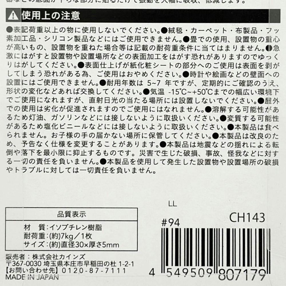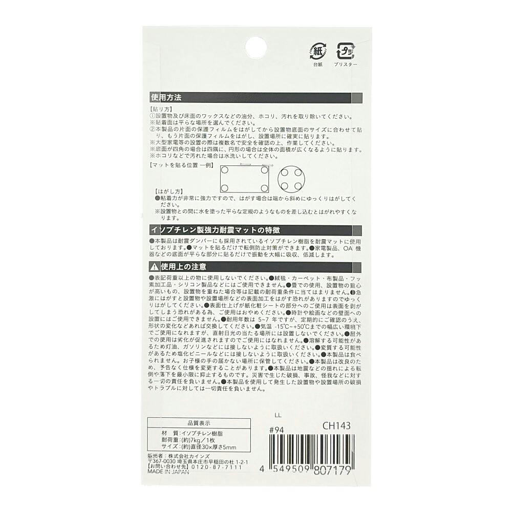 カインズ 転倒防止対策 耐震マット 5ミリ厚 30丸 4枚入