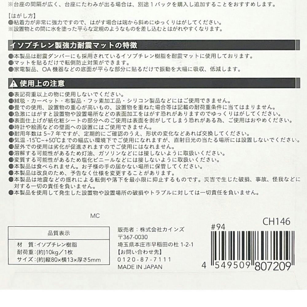 カインズ 転倒防止対策 耐震マット 5ミリ厚 80×13mm 6枚入