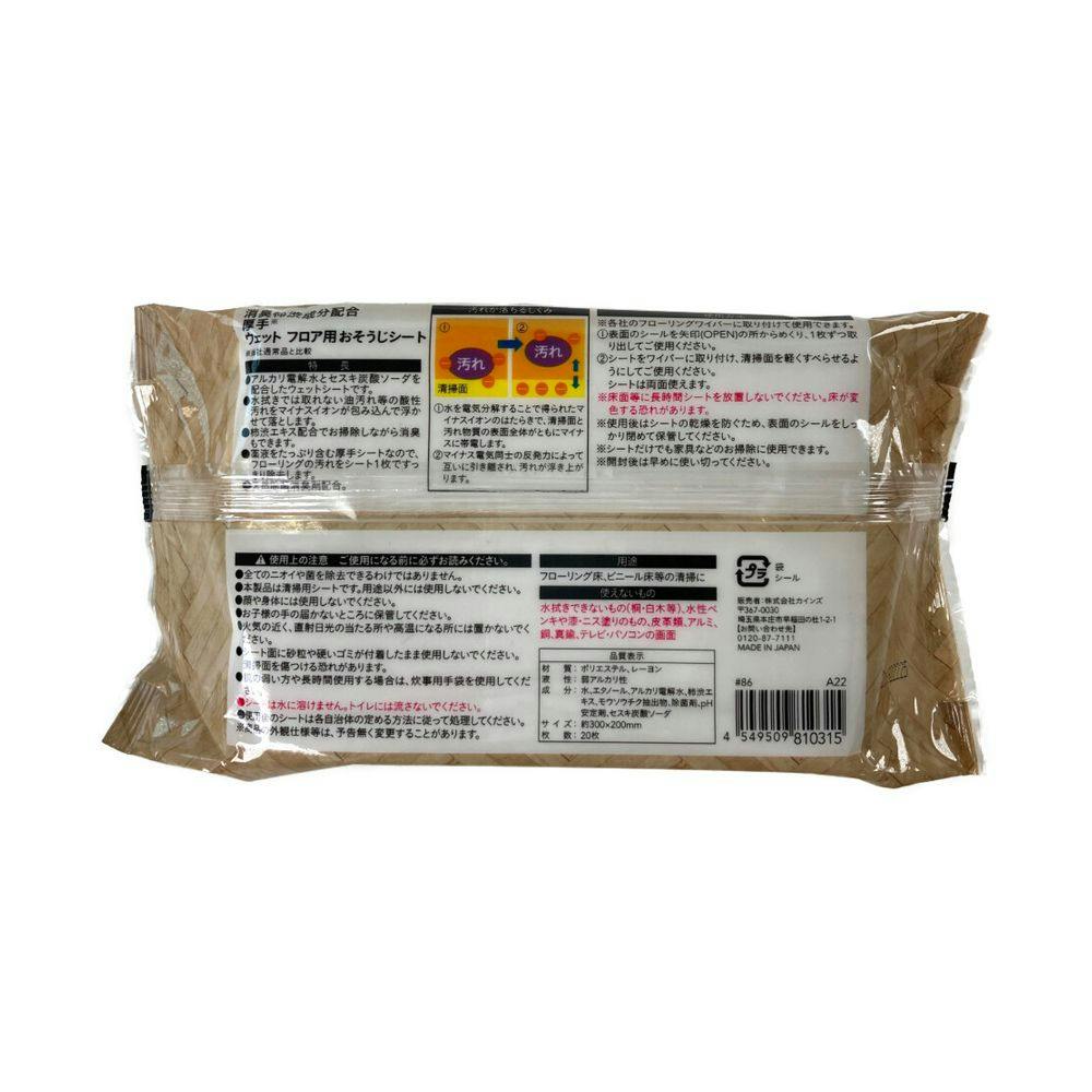 ●アルカリ電解水とセスキ炭酸ソーダを配合したウェットシートです。●水マイナスイオンが包み込んで浮かせて落とします。●柿渋エキス配合でお掃除しながら消臭もできます。●薬液をたっぷり含む厚手シートなので、フローリングの汚れをシート1枚ですっきり仕上がります。