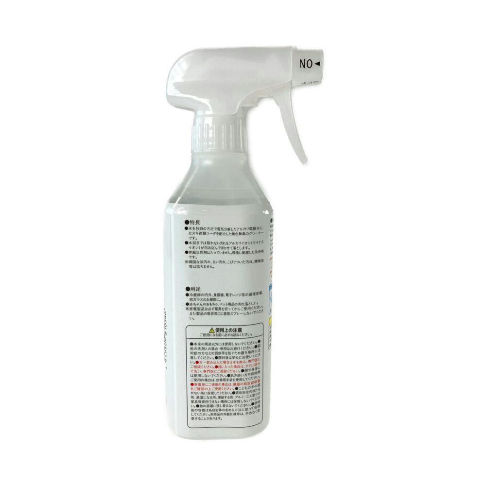 ●水を独自の方法で電気分解したアルカリ電解水に、セスキ炭酸ソーダを配合した無色無臭のクリーナーです。●水拭きでは取れない汚れをアルカリイオン(マイナスイオン)が包み込んで浮かせて落とします。