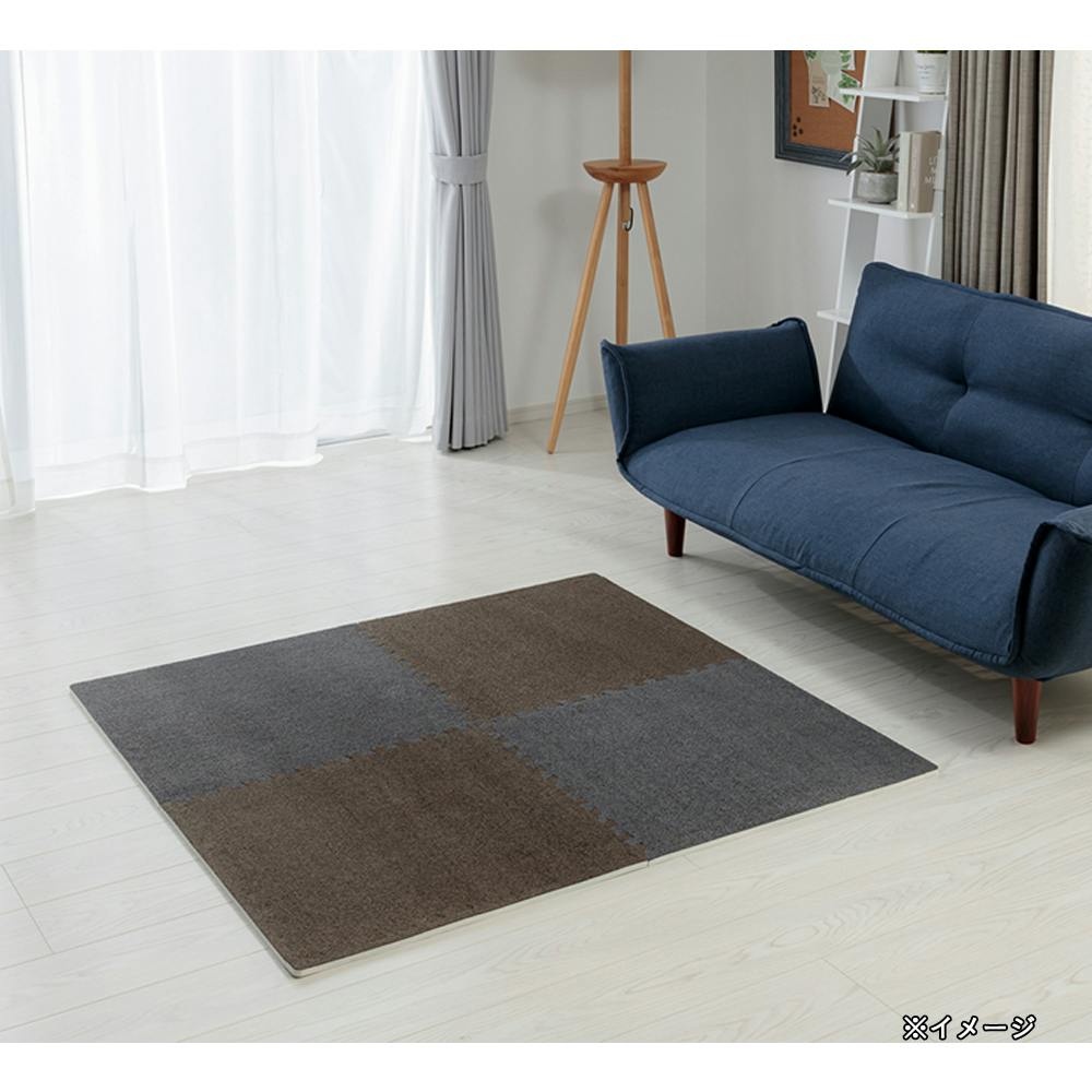 &Pet縁付大判パズルラグマット ブラウン/ダークグレー 58×58cm 4枚組セット