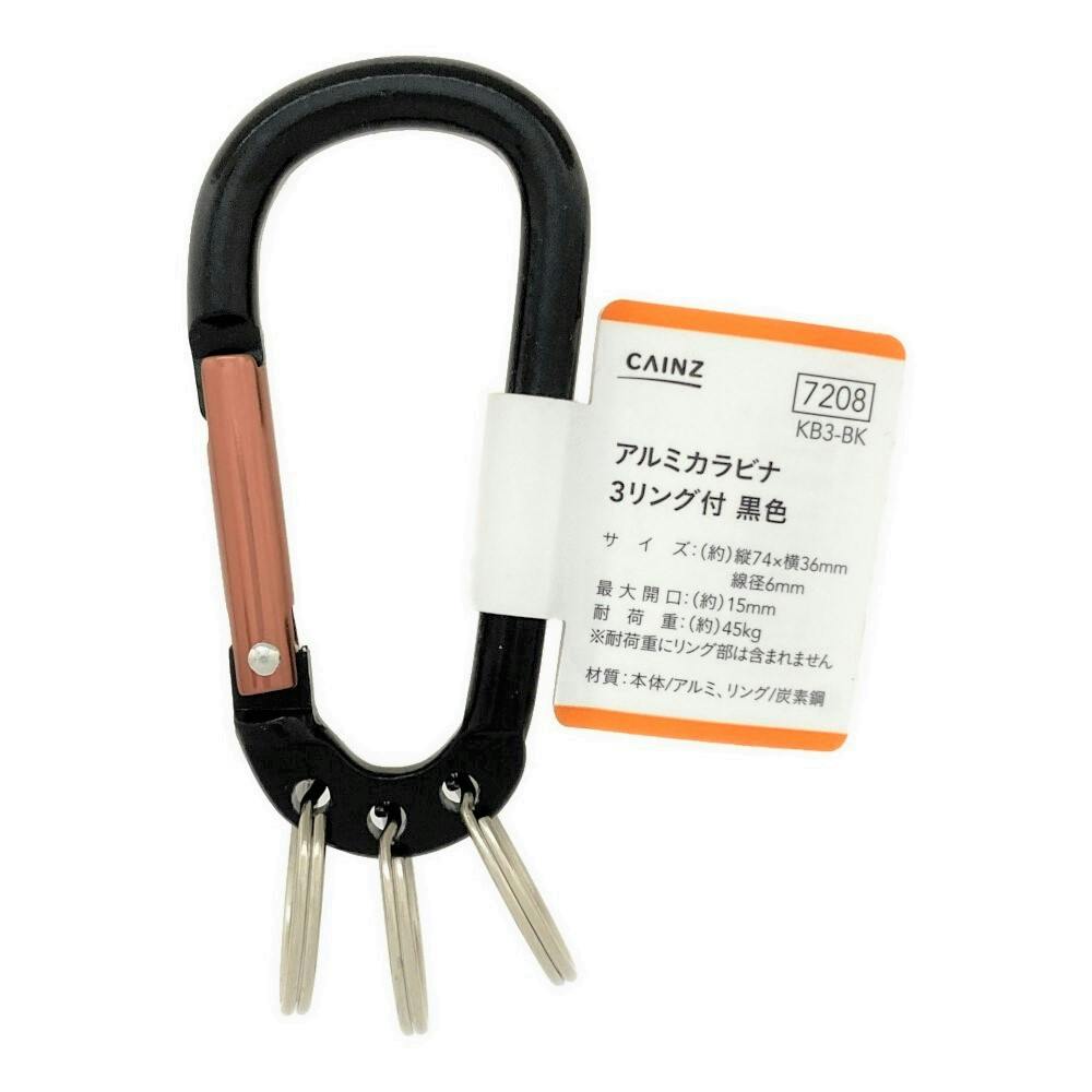 カインズ アルミカラビナ 3リング付 ブラック KB3-BK