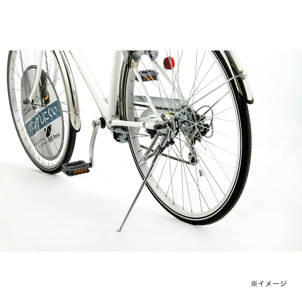 パンクしにくい底厚タイヤを装備したシティサイクル
