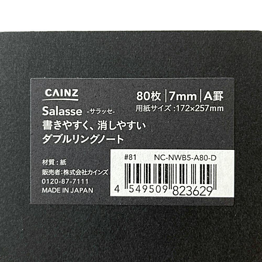 カインズ Salasse サラッセ ダブルリングノート B5 80枚 A罫 7mm ブラック