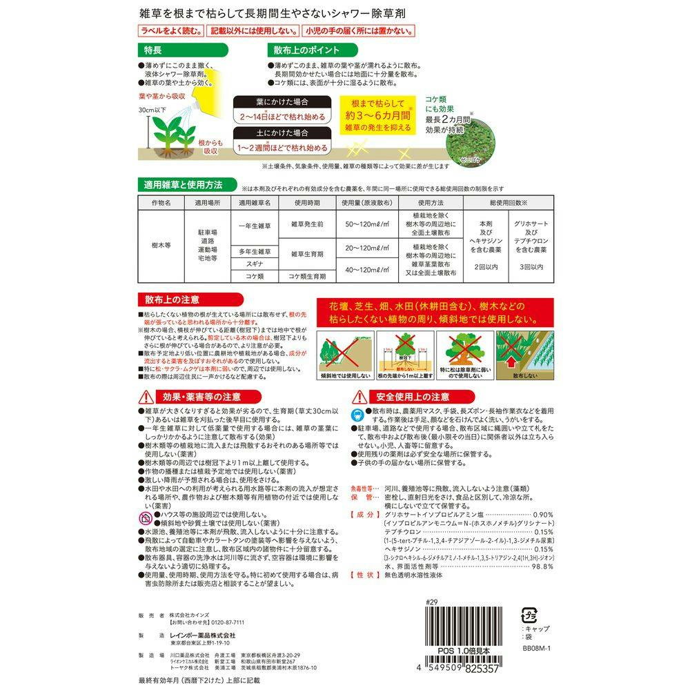 ネコソギシャワーV6 C 液体 そのまま使える除草剤 ゴミ減量パック 2L 最長6カ月持続 そのまま散布