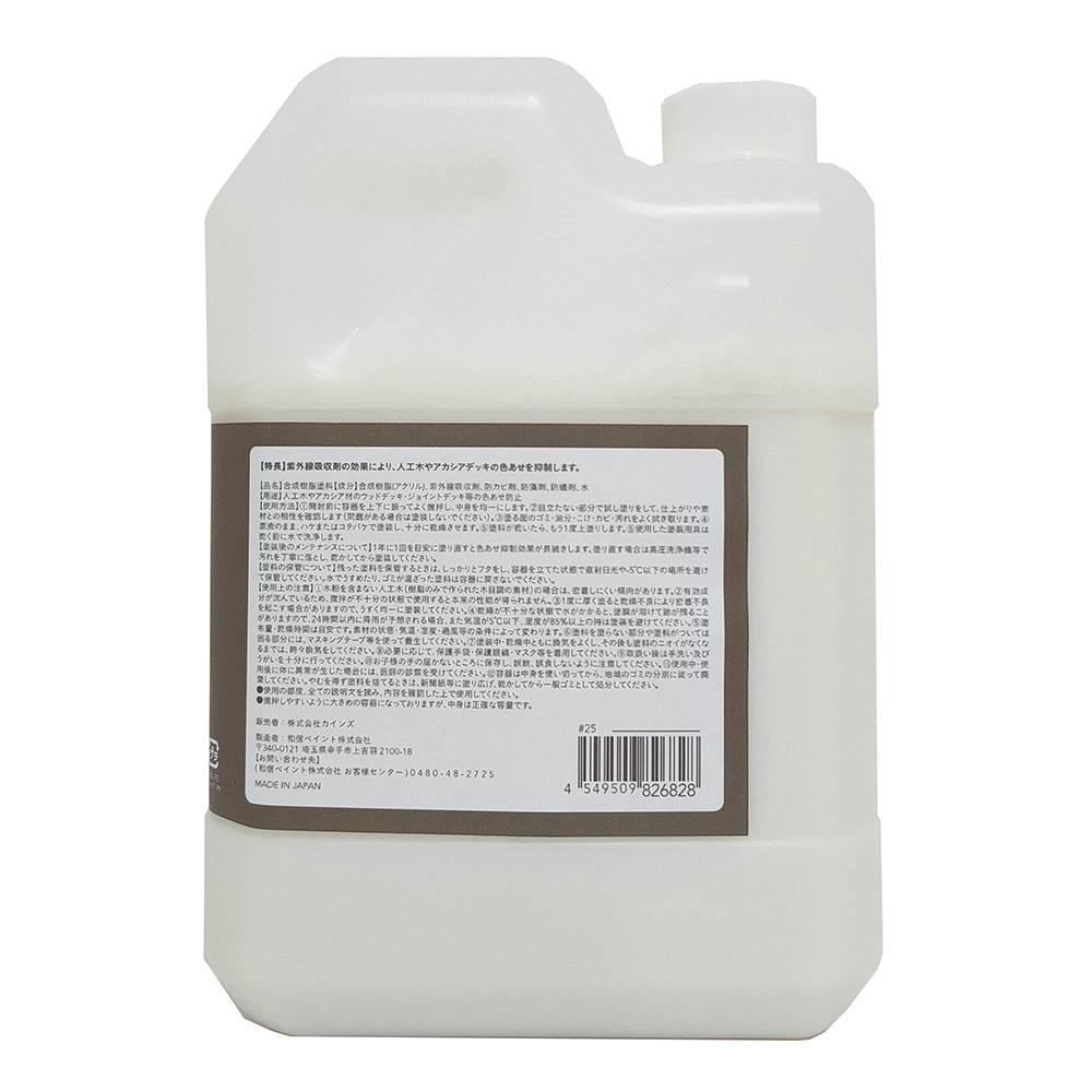 ●紫外線吸収剤の効果で人工木のデッキやジョイントデッキの白ボケや色あせ防止。●人工木材は時間とともに色あせていきますので、早い段階で塗るのがおすすめです。●水性なので低臭、速乾。