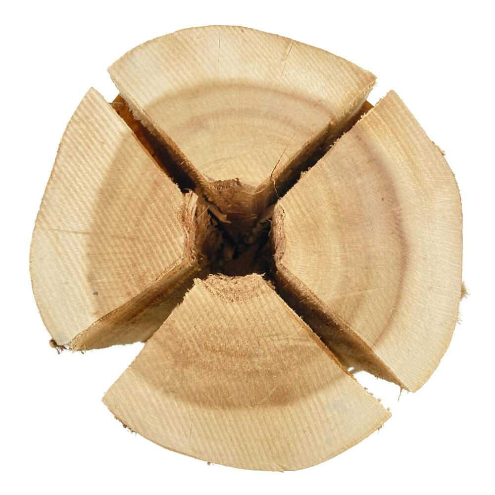 新聞紙や着火剤・木端など火が付きやすいものを十字の割れ目に入れて、ライターなどで着火