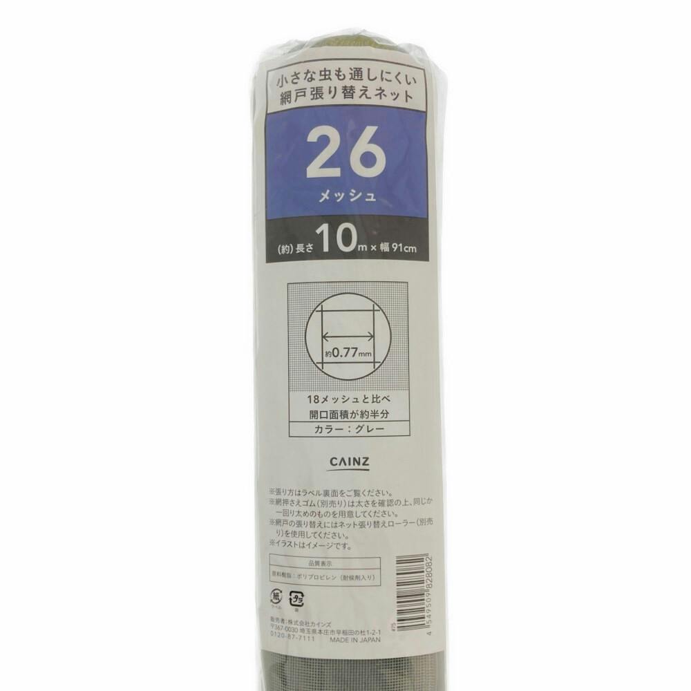 カインズ オリジナル 小さな虫も通しにくい 網戸張り替えネット 26メッシュ グレー 幅91cm 長さ10m 網戸張替え網