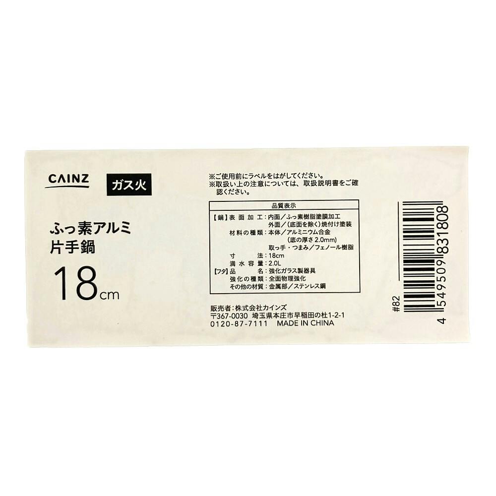 ガス火専用 ふっ素アルミ片手鍋 18cm