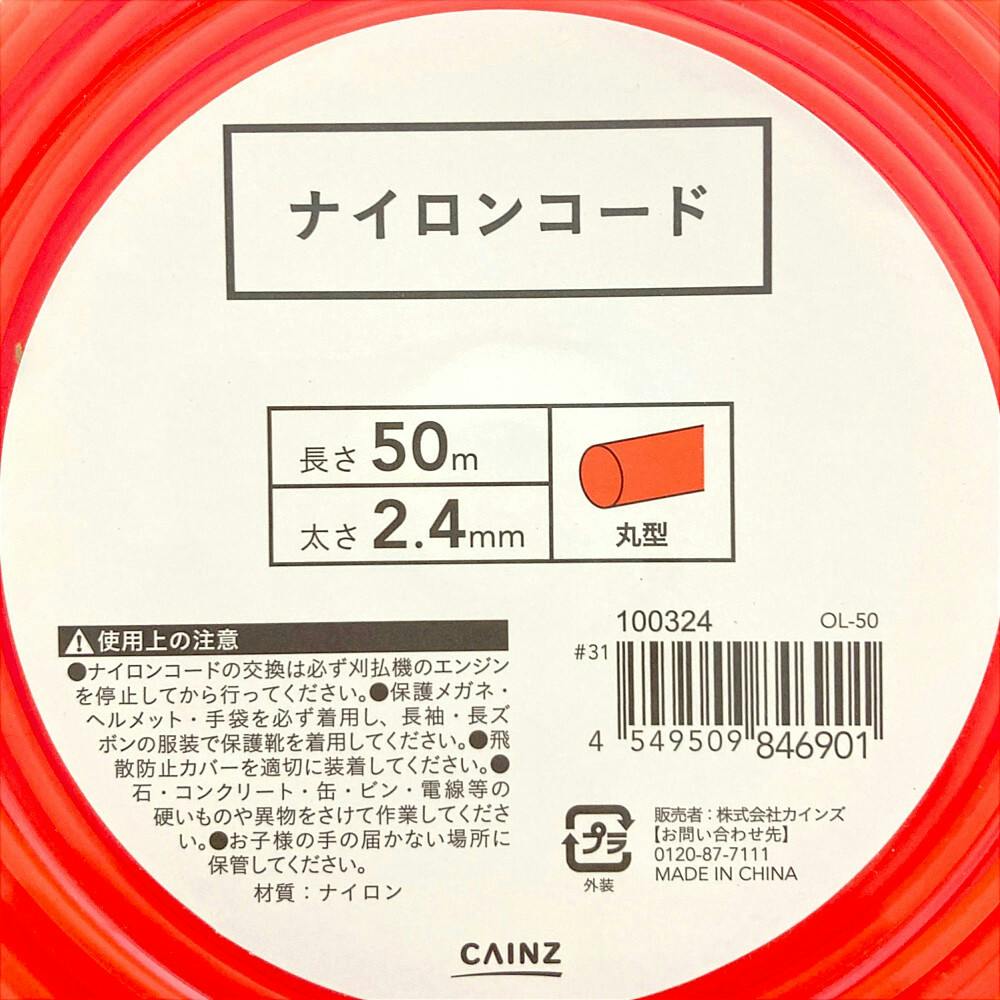カインズ ナイロンコード 丸 オレンジ 2.4mm×50m