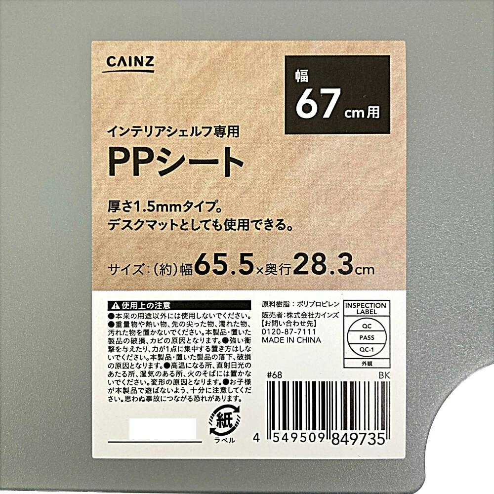 インテリアシェルフ 幅67専用 PPシート ブラック