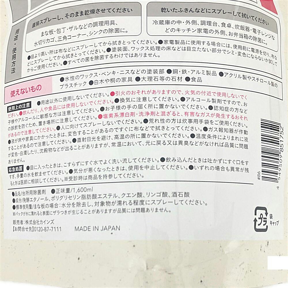 カインズ アルコール除菌スプレー 詰替 1600ml