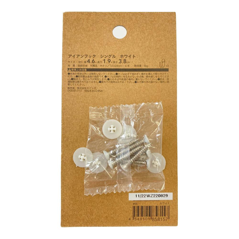 Kumimoku アイアンフック シングル ホワイト 3個入り
