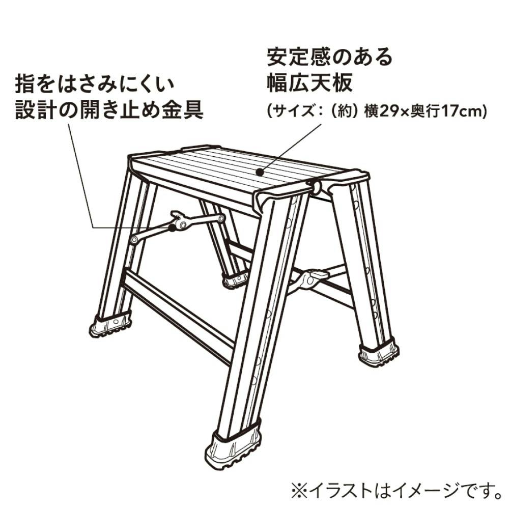 ●屋外使用厳禁 ●警告/立て掛け使用厳禁、重量物や大きな荷物を持っての昇降禁止、不安定な場所使用禁止、手や指を挟まないよう注意(製品開閉時に可動部や開き止め金具で手をはさむおそれがあり危険)、踏み台としての用途以外で使わないこと。など