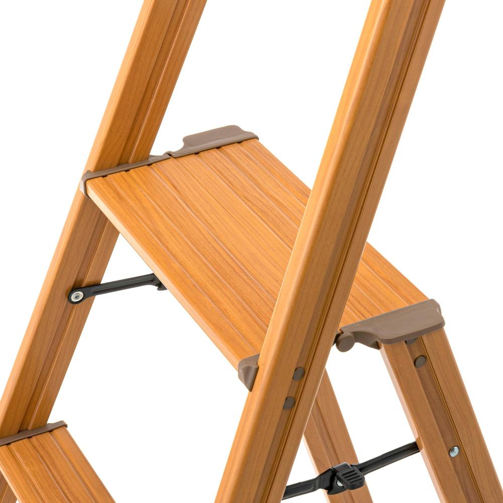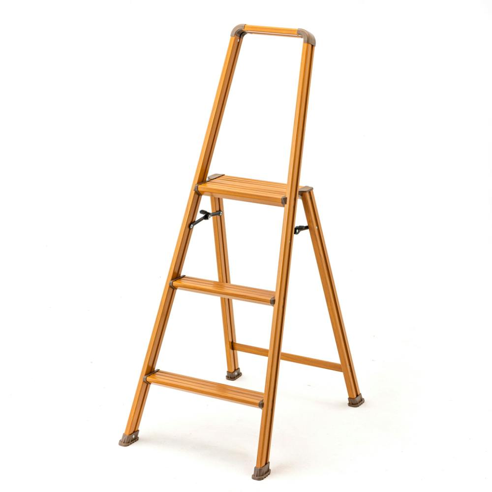 手摺付きアルミ幅広踏台 3段 木目調 CFF-05
