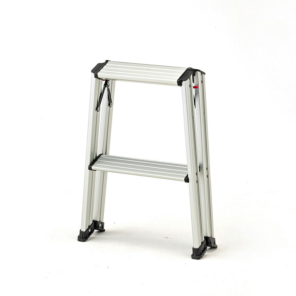 ●丈夫で安定感のある幅広脚 ●一般家庭(屋内)用 ●屋外使用厳禁 ●安定感のある幅広天板(サイズ:(約)横29×奥行17cm) ●指をはさみにくい設計の開き止め金具 ●足を乗せやすい幅広ステップ