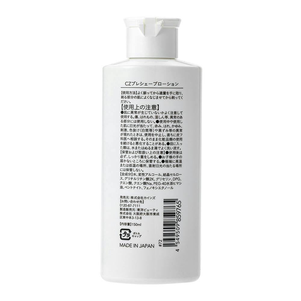 水、変性アルコール、結晶セルロース、グリチルリチン酸2K、グリセリン、DPG、クエン酸、クエン酸Na、PEG-40水添ヒマシ油、ベントナイト、フェノキシエタノール