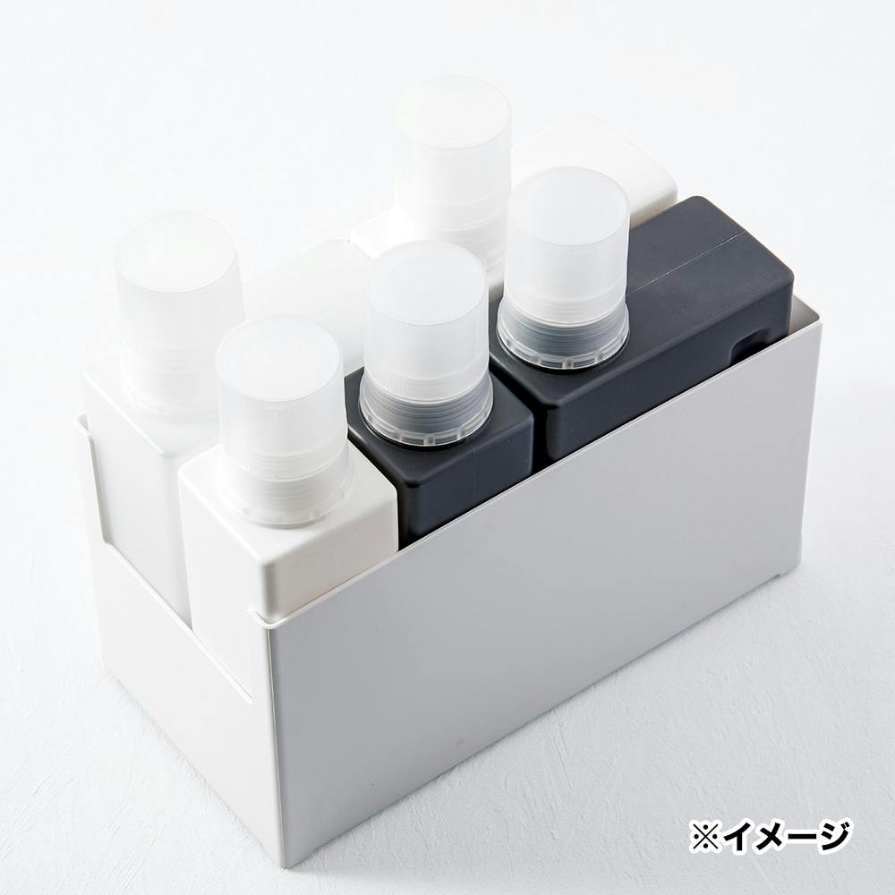 ●こちらのシリーズの詰替容器は、カインズの整理収納ボックス「Skitto」にピッタリ入るサイズです。●「Skitto」Lサイズなら、600mlボトル×2個、1.2Lボトル×1個、詰替ケース×1個がピッタリ収納できます。