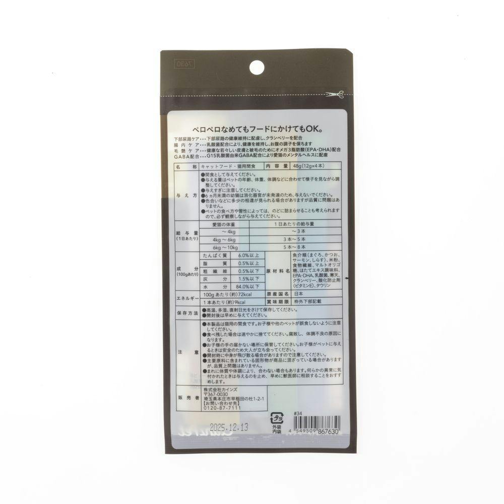 ●GABA配合/G15乳酸菌由来GABA配合により愛猫のメンタルヘルスに配慮●ペロペロなめてもフードにかけてもOK●全猫種用●国産