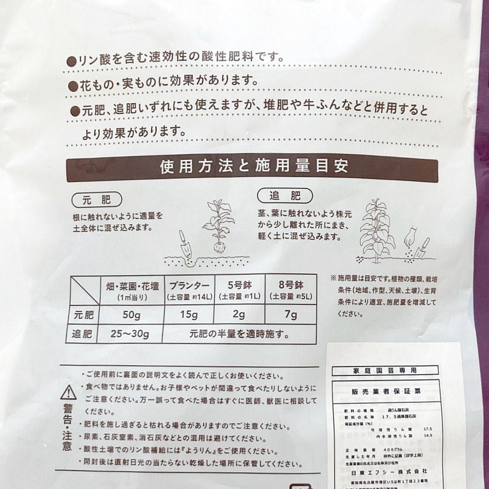 ●可溶性りん酸:17.5% 内水溶性りん酸:14.5%