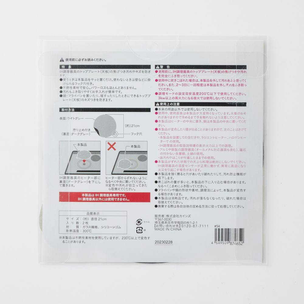 IHクッキングヒーター用 保護マット 21cm キャット柄 2枚入