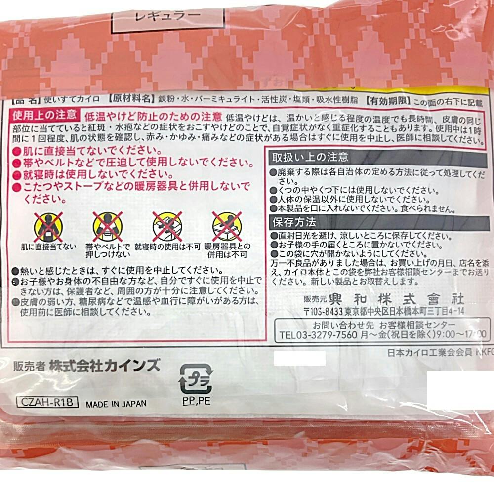 ●貼らないカイロ ●レギュラーサイズ ●原産国/日本