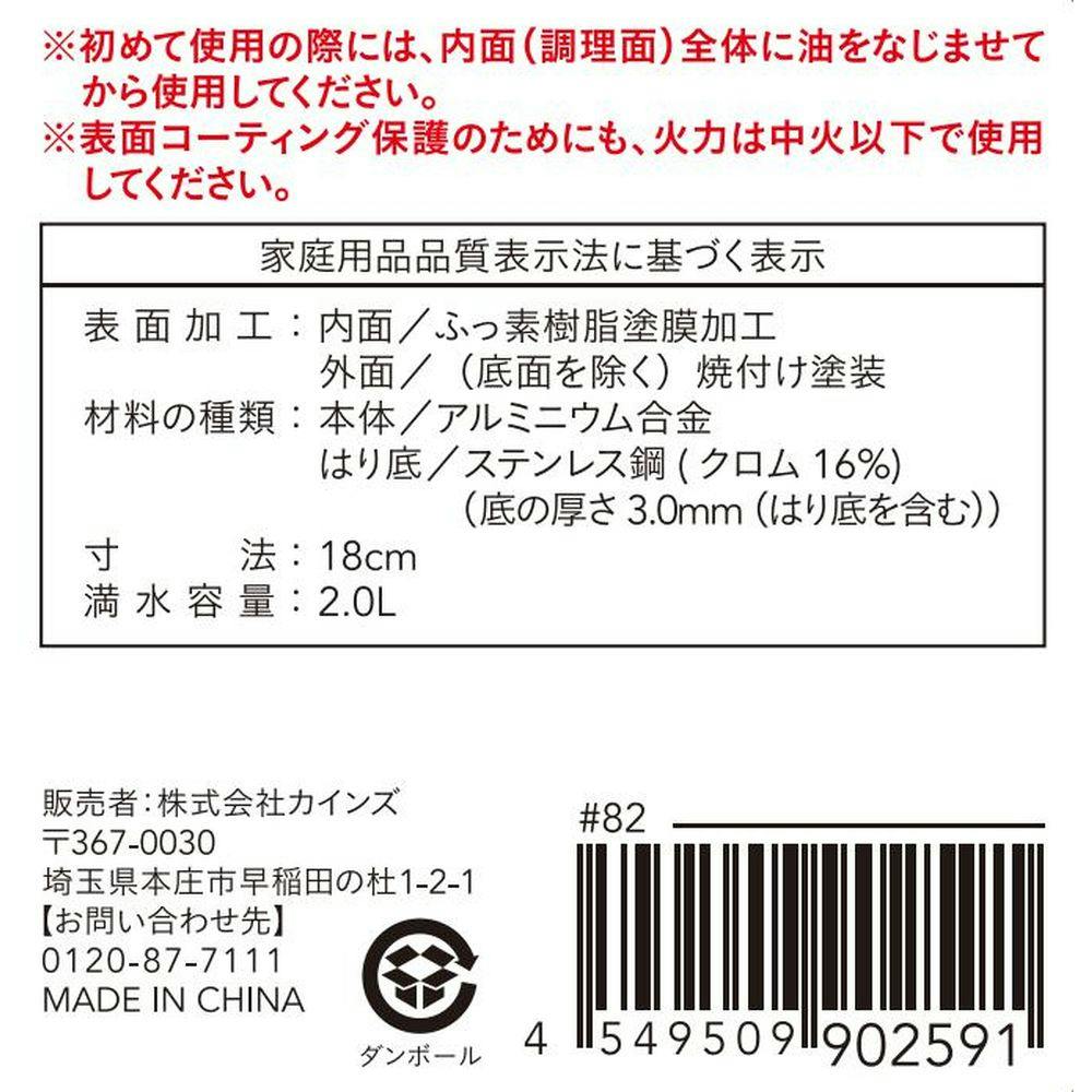 内面/ふっ素樹脂塗膜加工 外面/焼付塗装