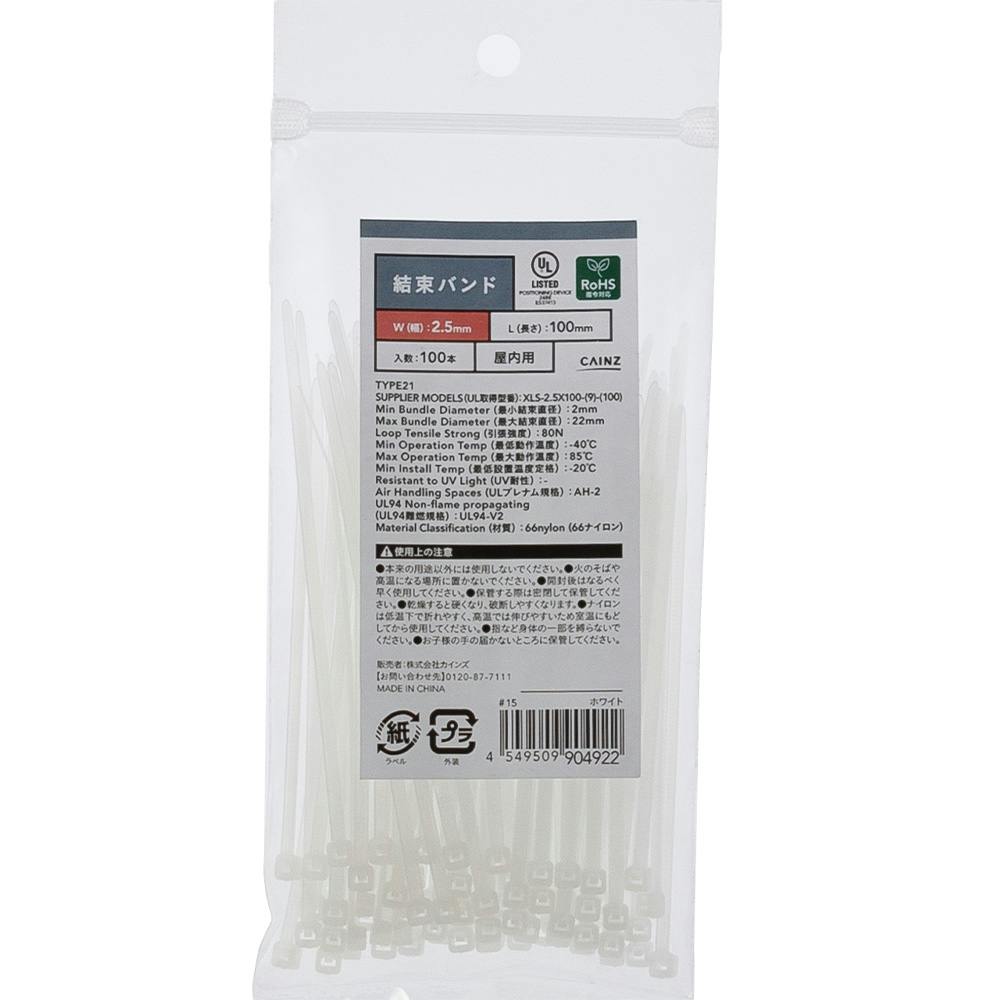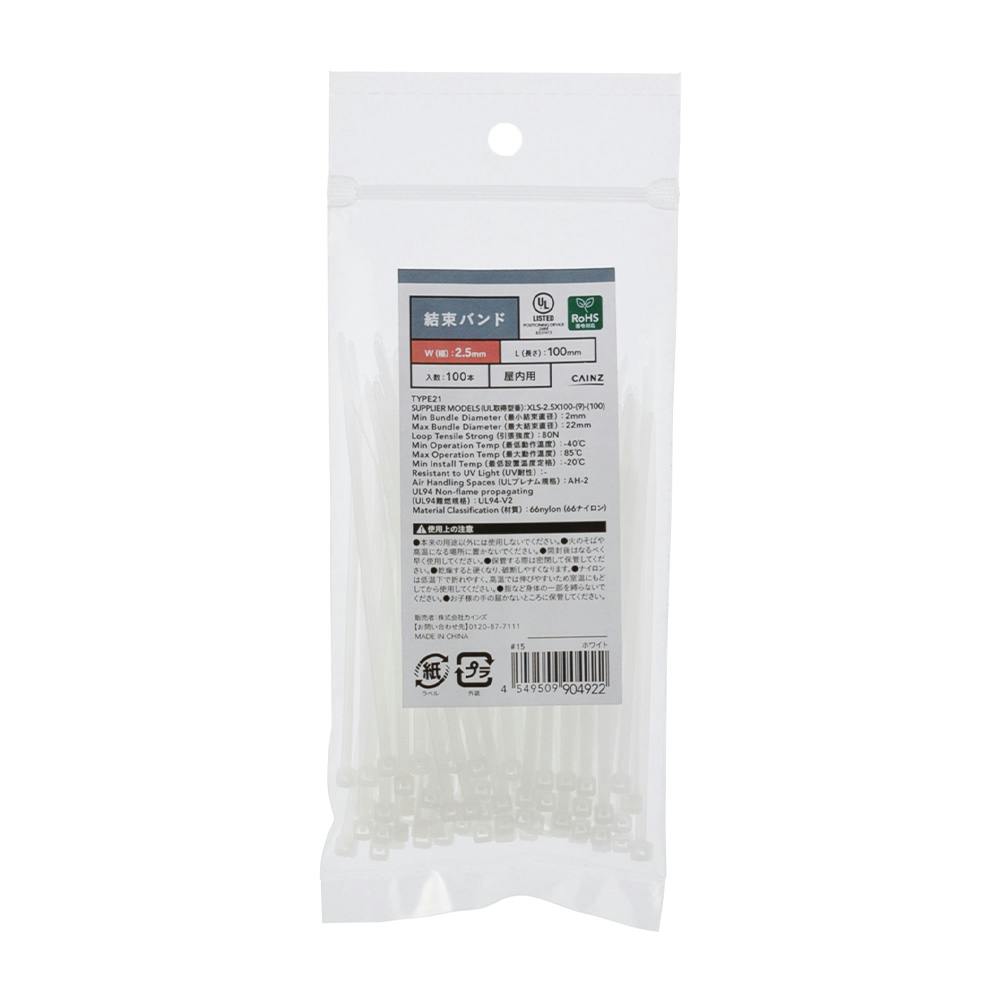 カインズ 結束バンド 屋内用 ホワイト 幅2.5mm長さ100mm 100本