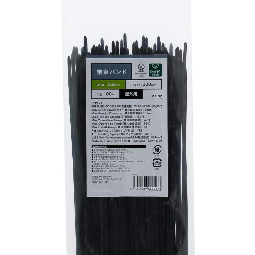カインズ 結束バンド 屋外用 ブラック 幅3.6mm 長さ300mm 100本