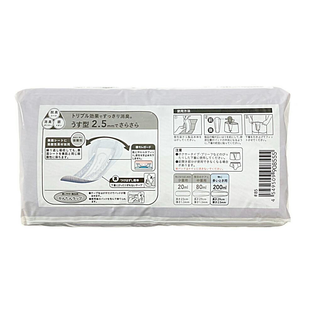 表面シートに弱酸性素材採用。トリプル効果ですっきり消臭。肌にやわらかフィッ ト。尿を せき止め モラしません。