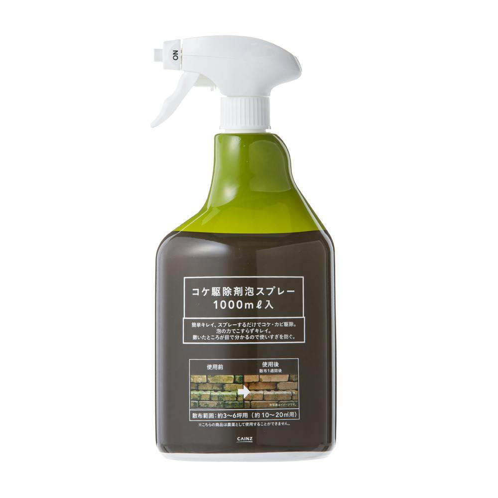 • コケ駆除剤泡スプレー 1000ml 泡状液体 コケ カビ 散布 予防 ベランダ 門柱 黒ずみ除去