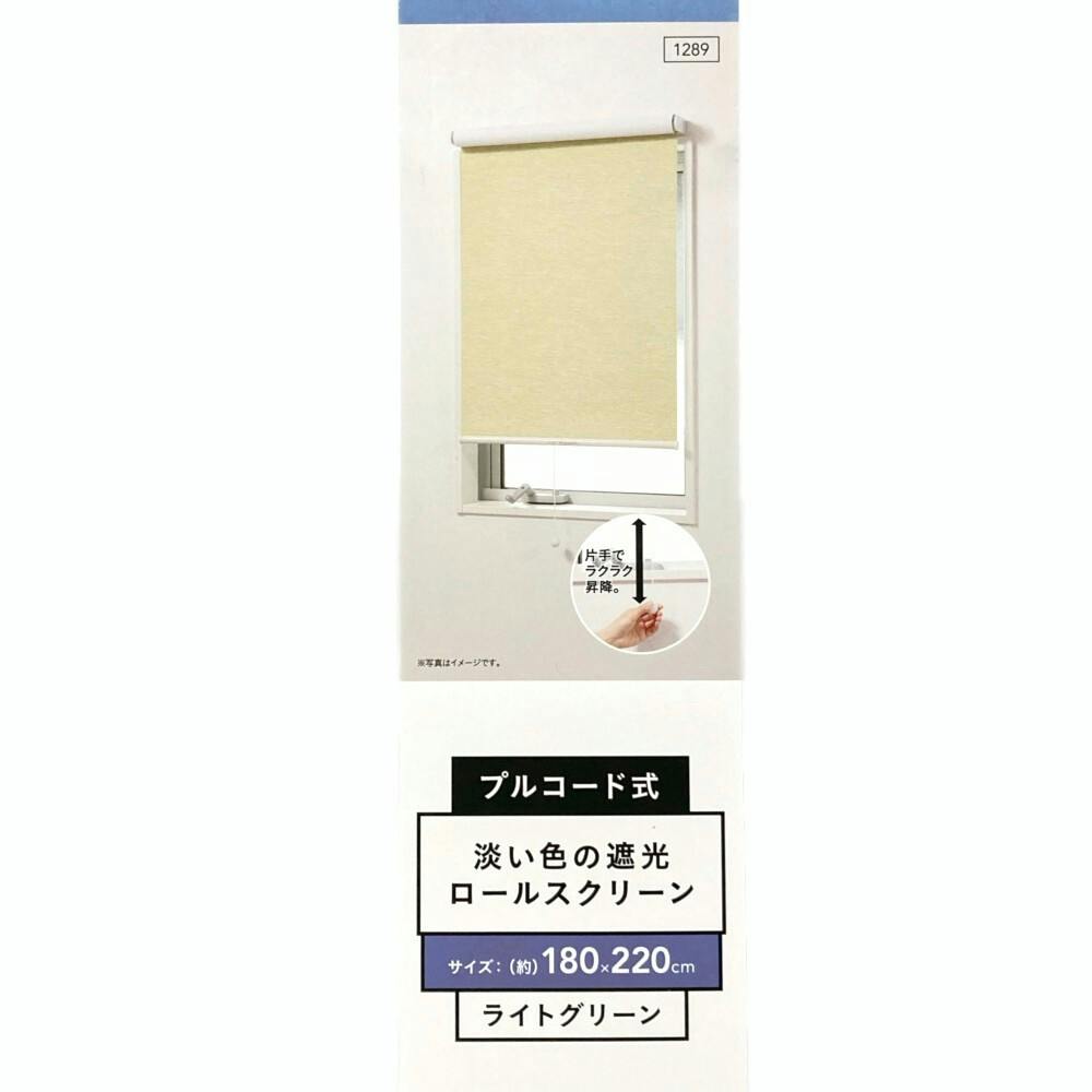 淡い色の遮光プルコード式ロールスクリーン 180×220cm ライトグリーン
