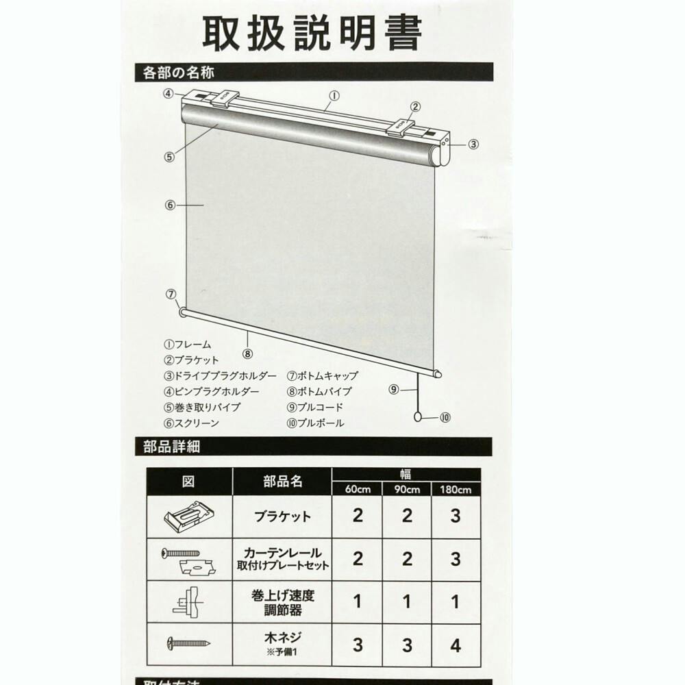 ブラケット3個、カーテンレール取付けプレートセット3個、巻上げ速度調節器1個、木ネジ4個(※予備1)