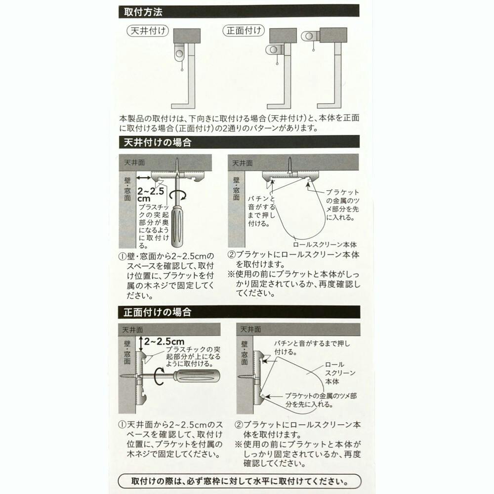 取付けの際は、必ず窓枠に対して水平に取付けてください。付属の取付ネジは木部専用です。木部以外では使用しないでください。壁や天井に取付ける場合必ず事前にネジの下穴を開けてください。木ネジが折れたり取付面にひび割れが起きることがあります。