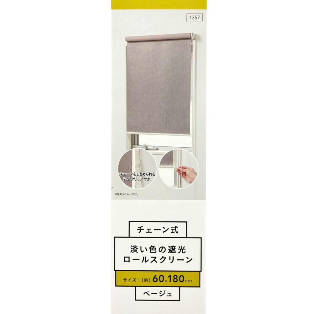 淡い色の遮光チェーン式ロールスクリーン ベージュ 60×180cm