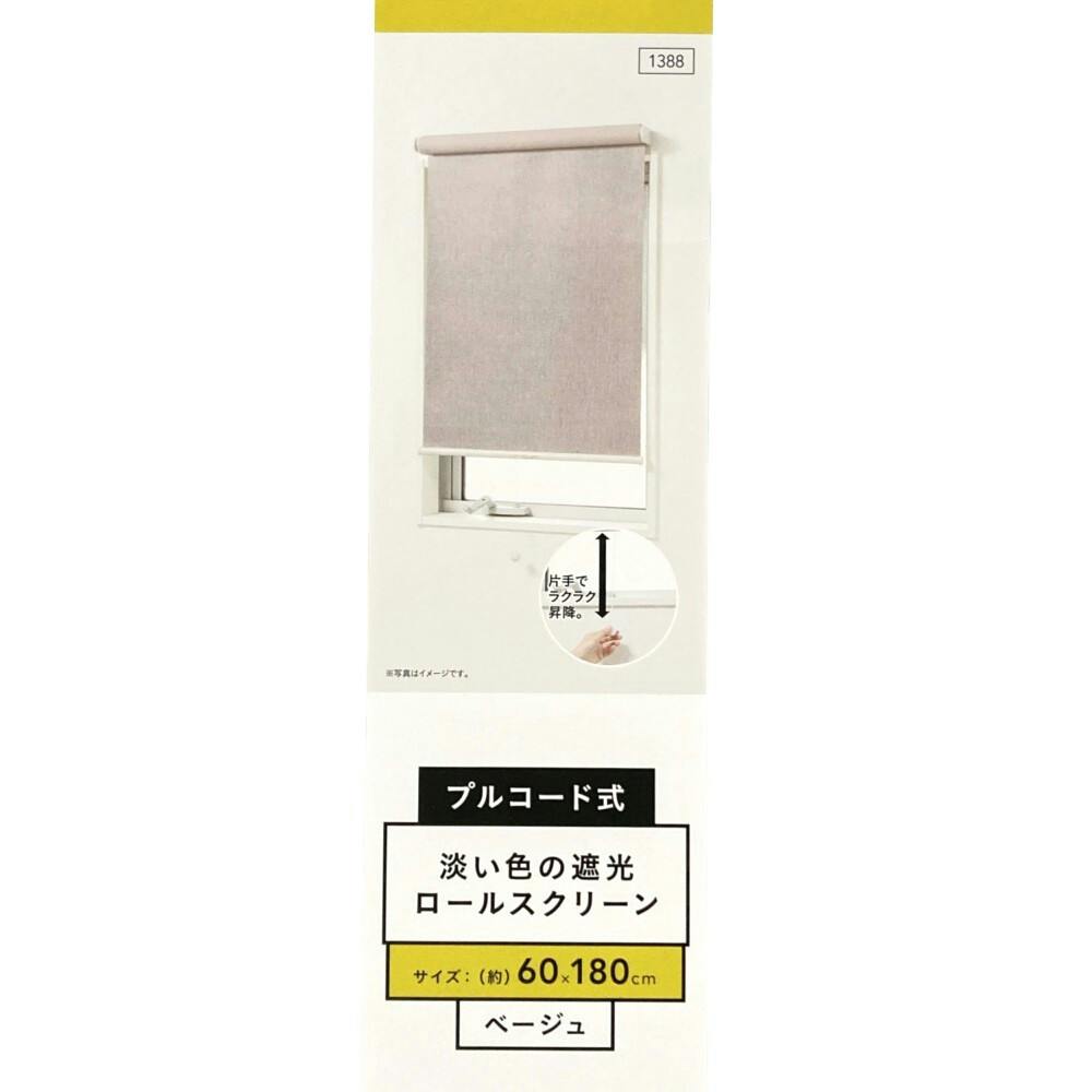 淡い色の遮光プルコード式ロールスクリーン 60×180cm ベージュ